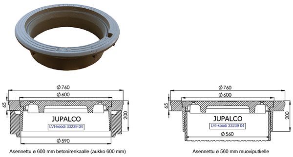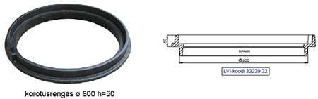 | Kehys / kor.rengas ø 600 h=50mm | 3323932 | | Tarkoitettu ø 600 mm aukolle / kehykseen |