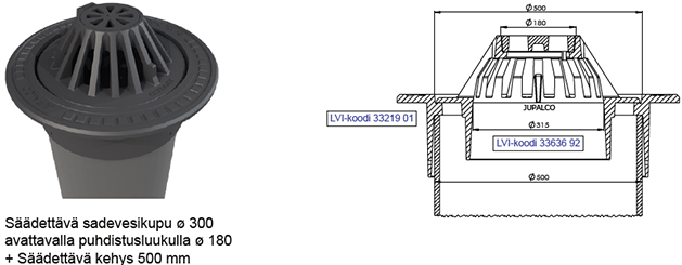 Säädettavä sadevesikupu ø 500