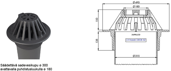 Jupalcon säädettävät EN124 - normin mukaiset sadevesikuvut sisältävät avattavan puhdistusluukun. Puhdistusluukun tarkoitus on helpottaa kaivon tyhjentämistä. Enää ei tarvitse nostaa painavaa sadevesikupua ylös puhdistustöiden ajaksi. Sadevesikuvut ovat varustettu reilulla kankikololla.