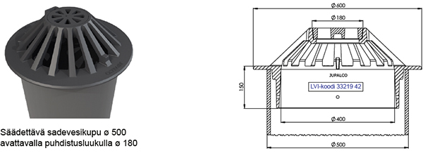 Säädettavä sadevesikupu ø 600