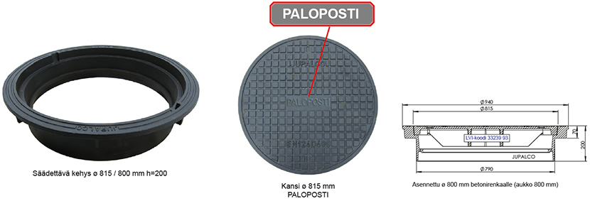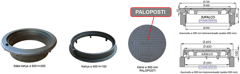 Sääd.kehys ø 600 h=200 mm | 3323903 | | Kannelle ø 600 paloposti |