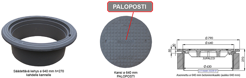 Sääd.kehys ø 640 h=270 mm kahdelle kannelle | 3323961 | | Kannelle ø 640 D400 paloposti |
