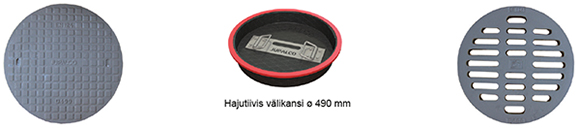 | Hajutiivis välikansi ø 490 | 3328873 | | Lujitemuovi, muototiiviste, nostokahvoilla |