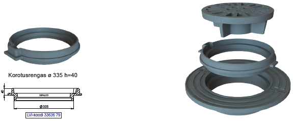 Korotusrengas ø 335 h=40 / 75 mm kalteva malli | 3363680 | | Kalteva malli. Korotus 40 / 75 mm Korotusrenkaita voidaan asentaa useampi päällekkäin. |