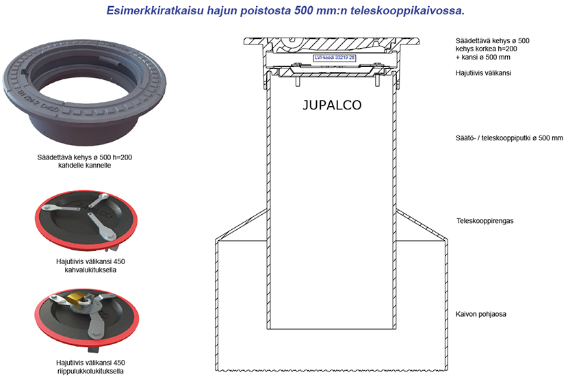 Hajutiivis kansistoratkaisu ø 500 mm kaivolle