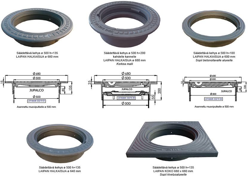 Sääd.kehys ø 500 h=135 mm | 3321902 | | Laippa nelikulmainen Laipan koko 680 x 680 mm |