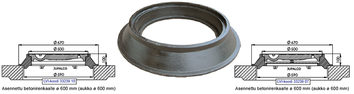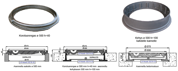 Kehys ø 500 / 600 h=100 mm Yhdelle kannelle | 3323910 | | Kehys ø 500 / 600 h=100 mm Kahdelle kannelle | 3323907 | |