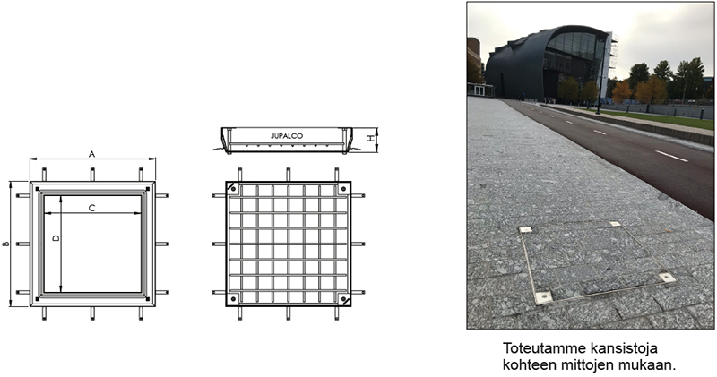 Liikennealueelle, painoluokitus D400 (40 tn) HST / RST tai alumiini Pinnat voidaan viimeistellä usealla eri tavalla