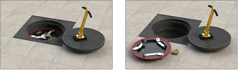 voi nostaa kaivonkannen pois paikoiltaan. Lukittavia kansistoja
