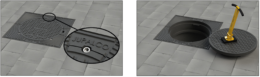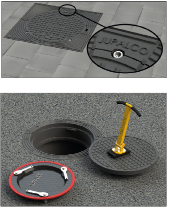 Sääd.kehys ø 300 h=115 mm, laippa nelikulmainen 490 x 490 mm + Kansi ø 300 lukittava | D400 (40tn) | 3363591 | | |