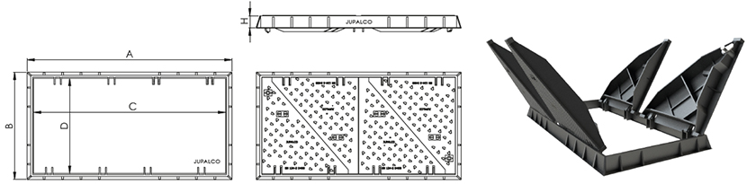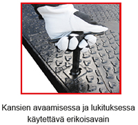 Sopii kohteisiin joissa tarvitaan suurta vapaata aukkoa. Kansistoissa on 4-osainen tai 2-osainen saranoitu kansirakenne. Painoluokitus on D400. Kehys ja kannet myydään aina settinä.