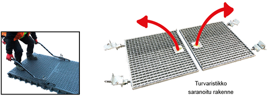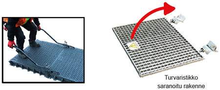 Kansistot ovat lukittavia. Kannet kiinnitetään kehykseen kuusiokolopulteilla. Kannen avaamiseen ja lukitukseen tarvitaan kuusiokoloavain. Kansien nostamiseen pois kehyksestä tarvitaan erilliset nostokahvat. Kansistoihin on saatavana myös turvaristikko.