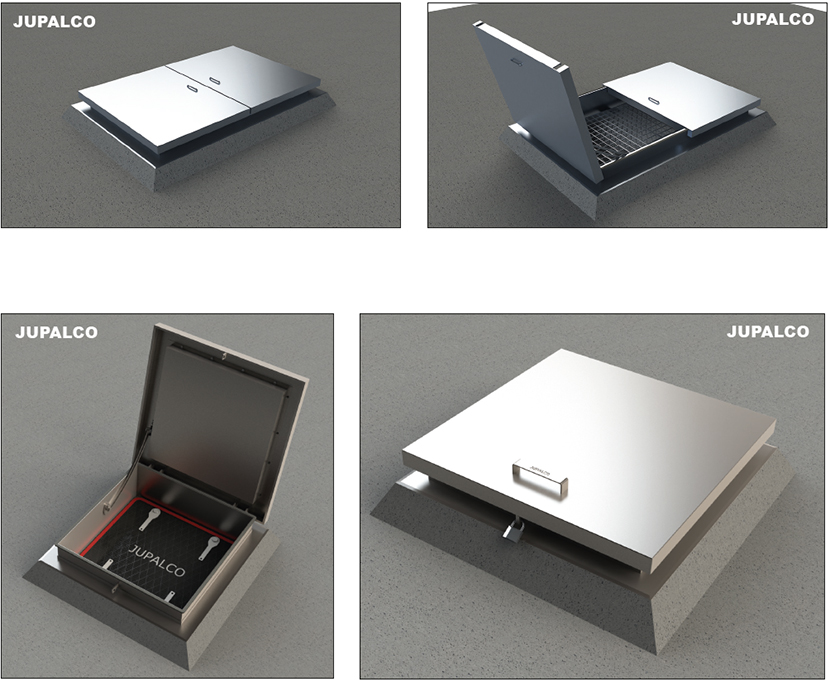 Ohessa esimerkkejä Jupalcon alumiinisistä sekä HST / RST - saranoiduista luukuista.