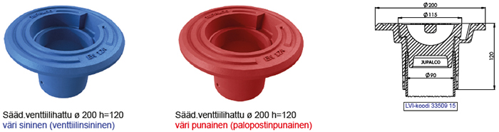 Sääd.venttiilihattu ø 200 h=120 mm putkelle 90 tai 110 mm | 3350924 | |