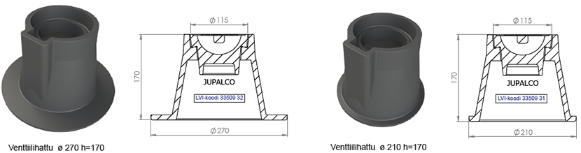 Kiinteä Jupalco venttiilihattu ø 210 h=170 mm sekä