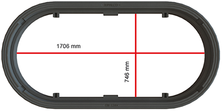 Kehyksen vapaa aukko 1170 x 560 mm (ovaali)