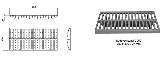 Sadevesikansi SA20D40 | 750 x 196 x 27 | D400 (40tn) | 3366617 | |
