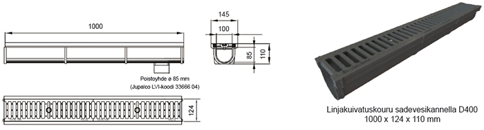 Linjakuivatuskouru VR100P Sadevesikannella D400 Poistoyhde 85 mm | 1000 x 124 x 110 | D400 (40tn) | 3366604 | |