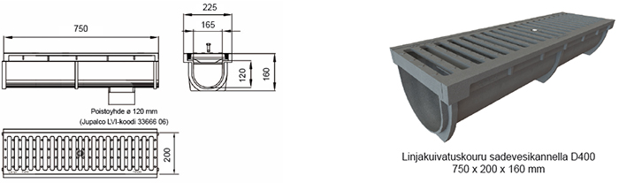 Linjakuivatuskouru VR200P Sadevesikannella D400 Poistoyhde 120 mm | 750 x 200 x 160 | D400 (40tn) | 3366606 | |